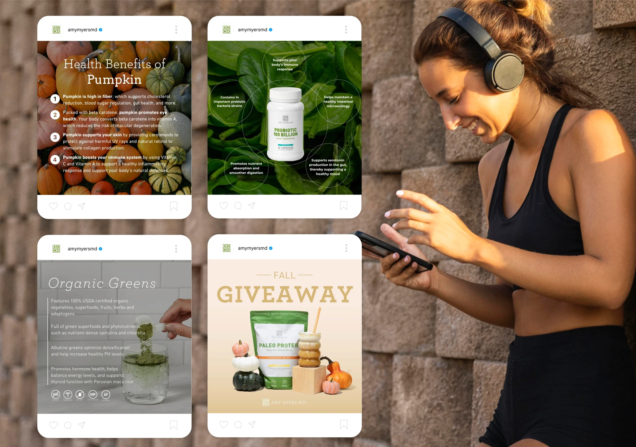 I designed social posts for Amy Myers, creating fresh, wellness-focused visuals that highlight her products and health messaging with clarity and warmth. Each post was crafted to feel clean, trustworthy, and aligned with her mission to help people feel their best.