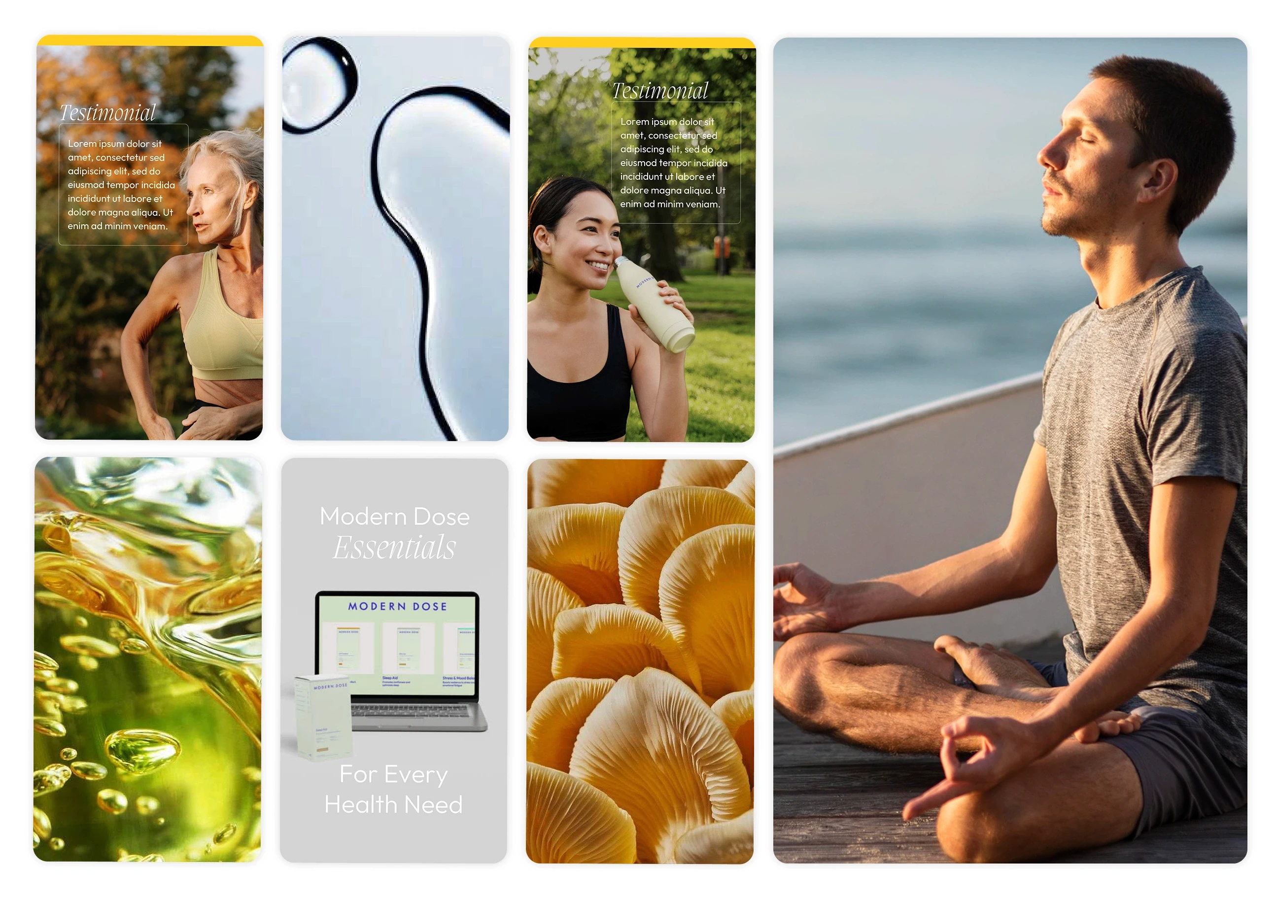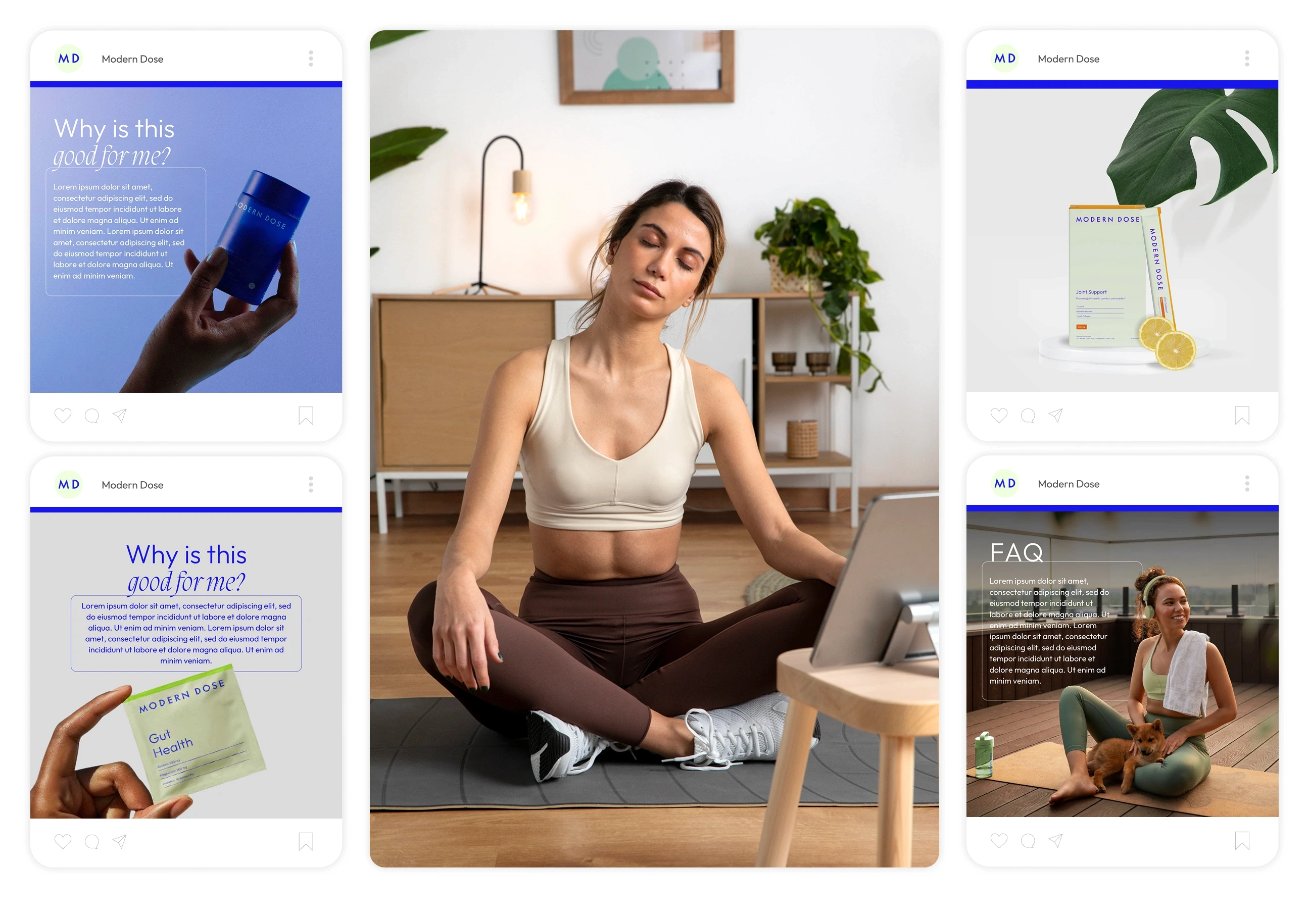 I designed clean and uplifting social posts for Modern Dose that highlight wellness, clarity, and confidence, helping the brand connect with its audience through fresh, modern visuals.