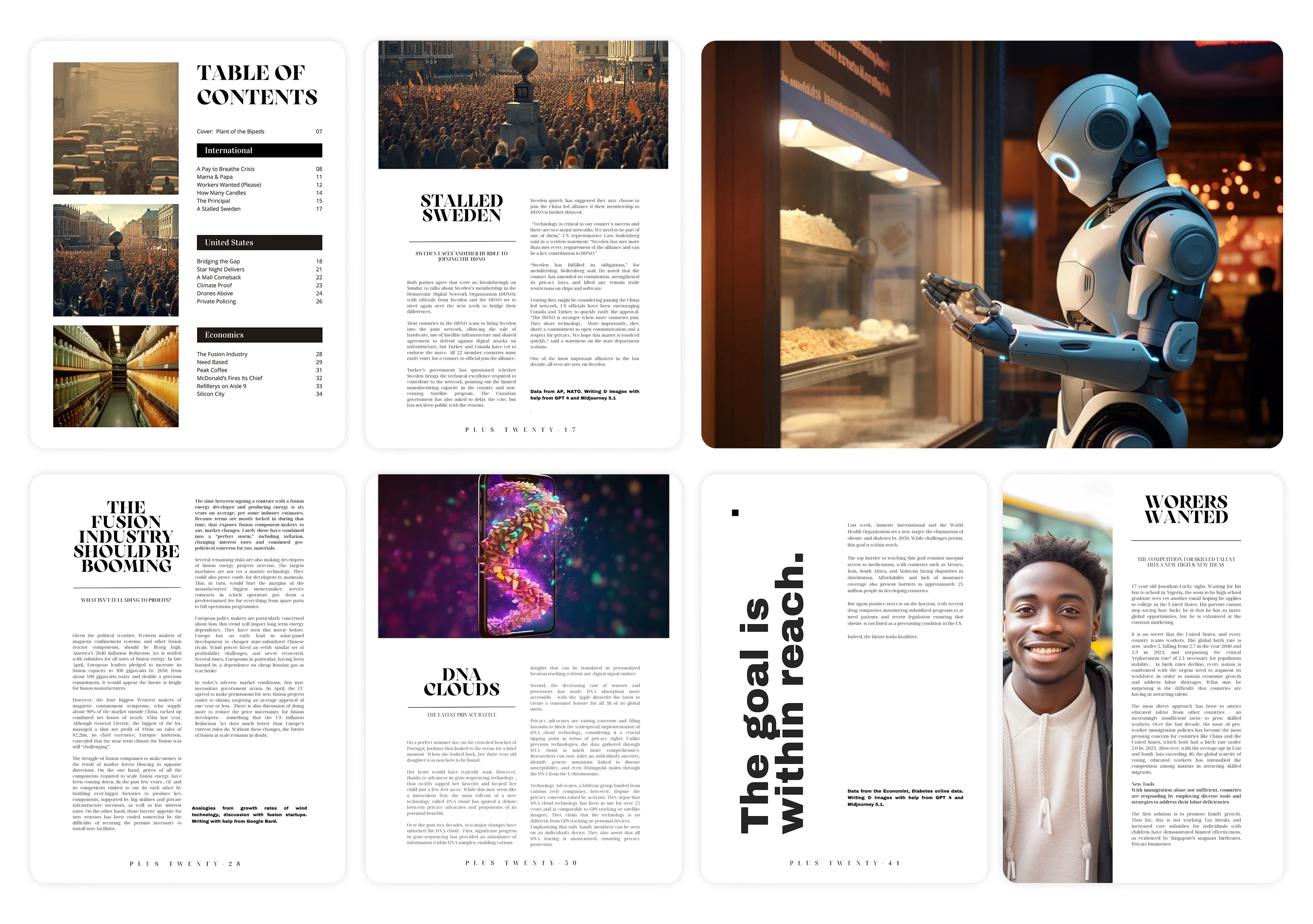 I designed a visually rich and modern book for Plus Twenty, blending storytelling with bold editorial layouts and high-impact imagery. My focus was on creating a reading experience that feels dynamic and immersive, using clean typography, thoughtful composition, and a strong visual narrative. Each spread was crafted to balance clarity and personality, giving the content a polished, future-focused look that aligns with the book’s themes.