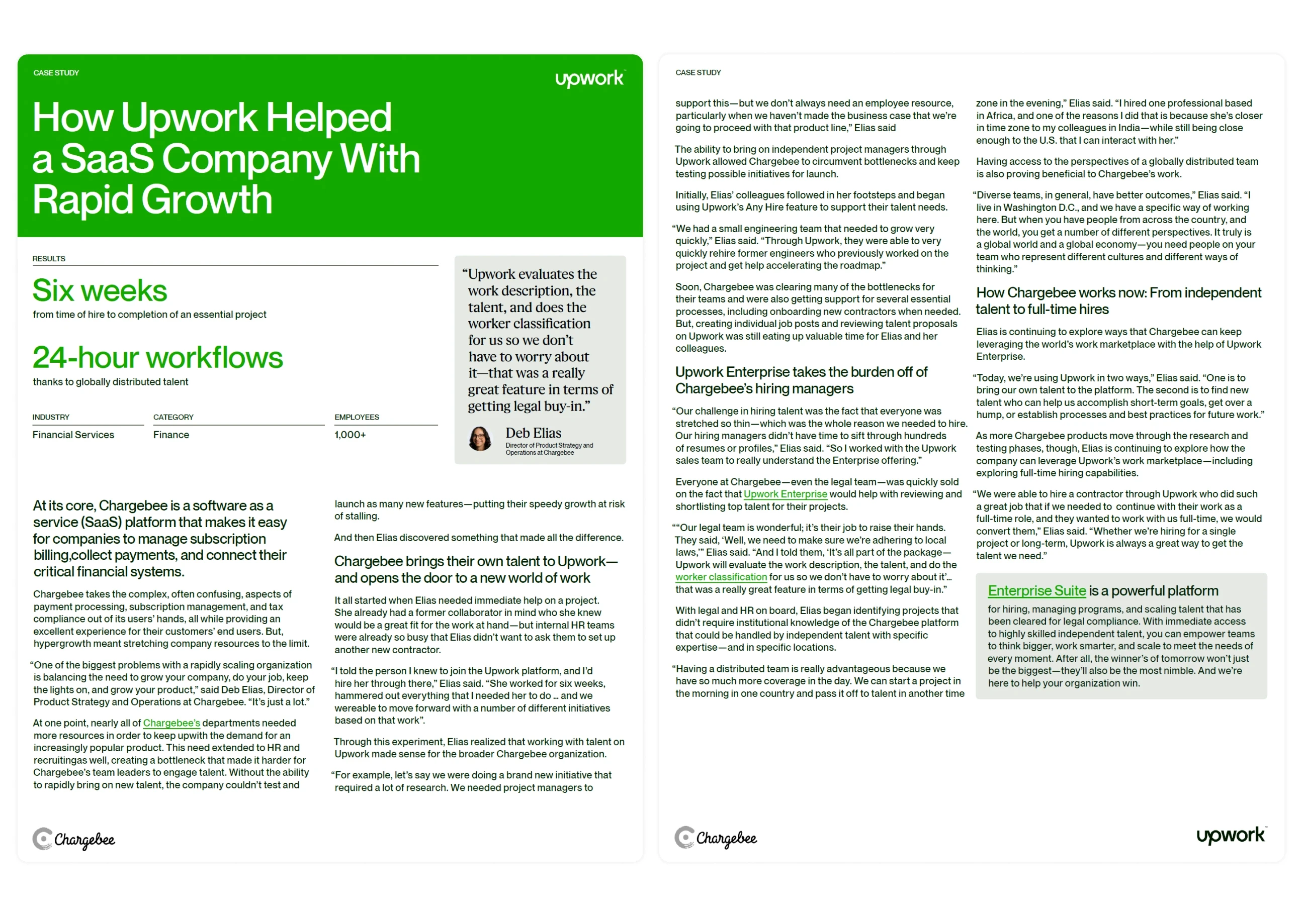 I worked with Upwork’s internal team to design vibrant decks, engaging case studies, and polished corporate documents, all focused on their B2B side. Together, we showcased Upwork’s value to businesses, bringing their vision to life with creativity and impact!